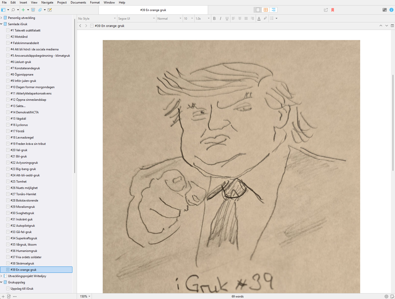 ”Det finns saker som får mig att fundera över sakernas tillstånd: Våld, fattigdom, snålhet, småsinthet, kollektiv fördumning, svensk fascination över USA, mindervärdeskomplex, missbruk och en hel del andra områden.”