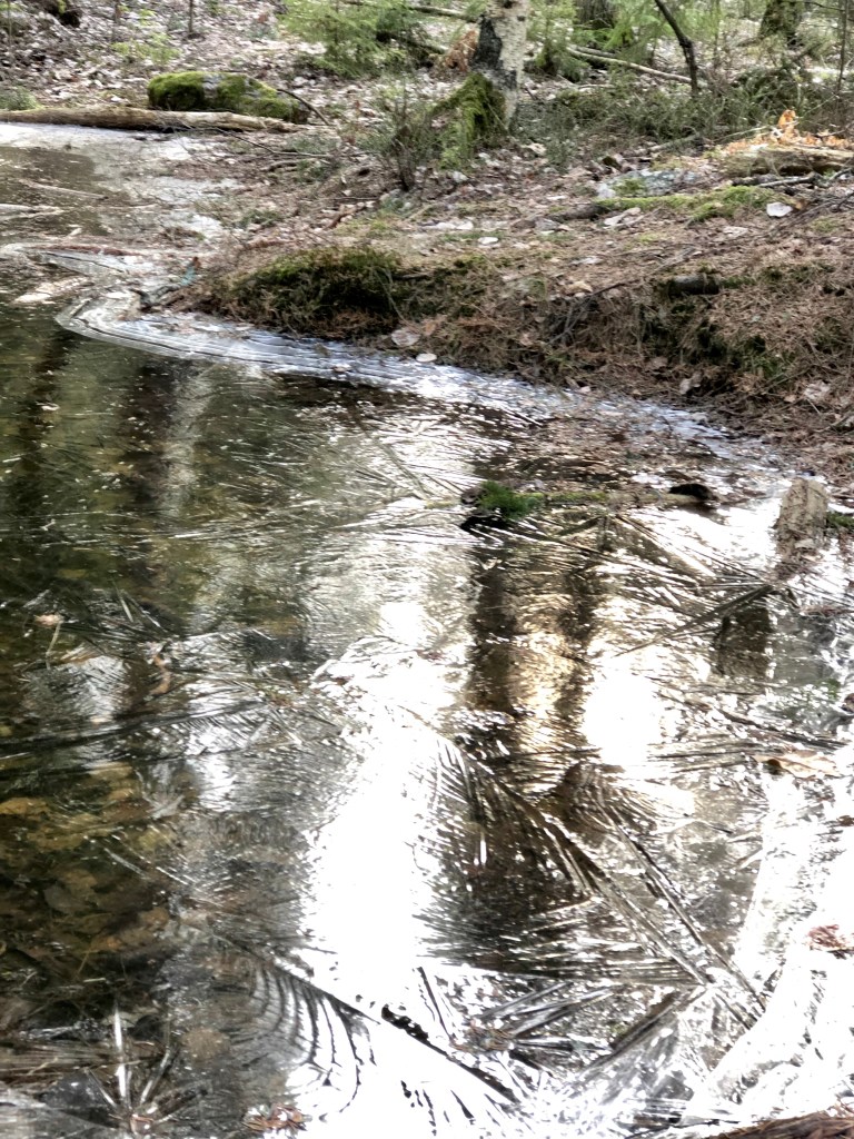 Himmel och jord förenas, speglas i vattenpussar under min skogsvandring